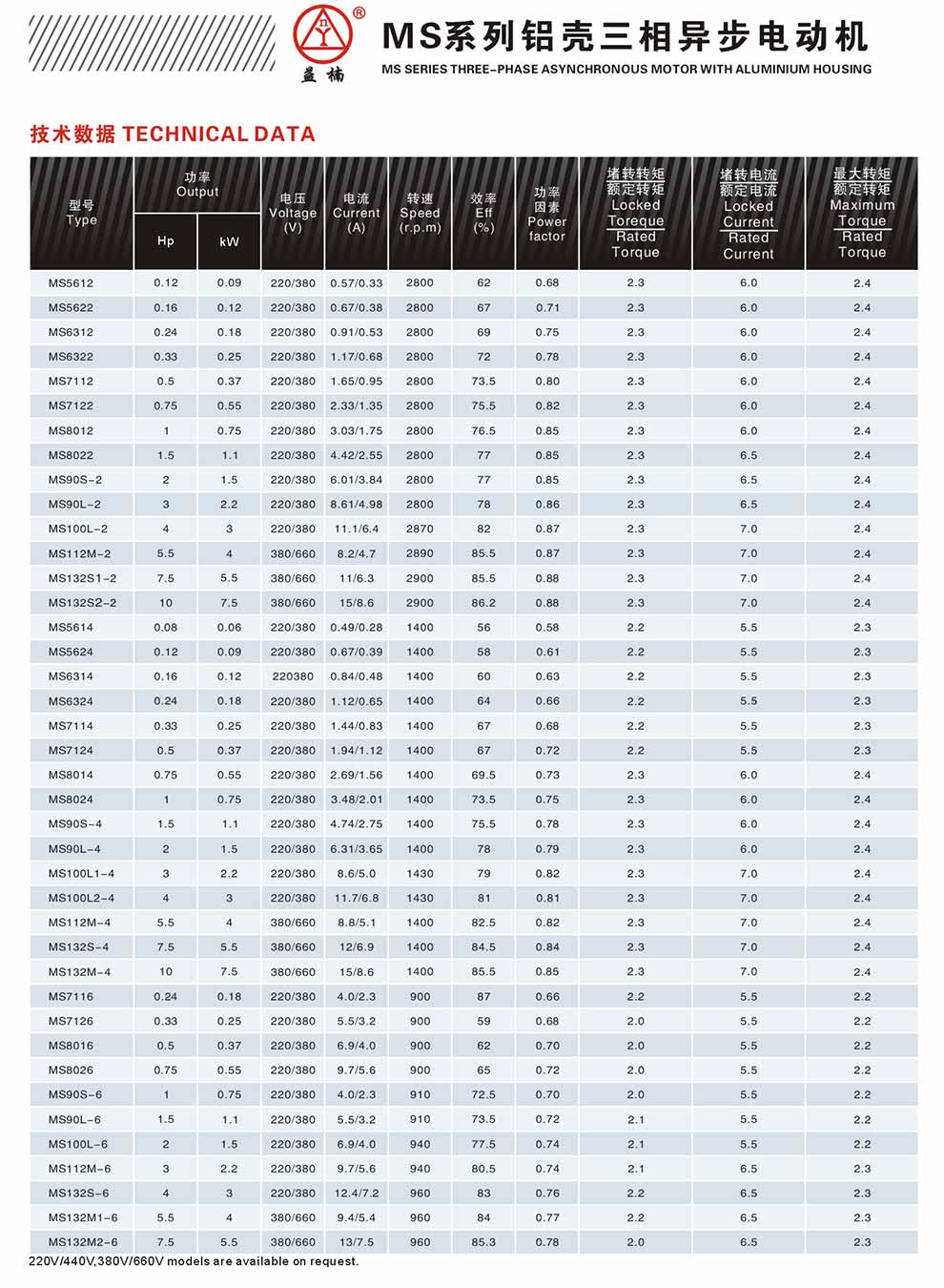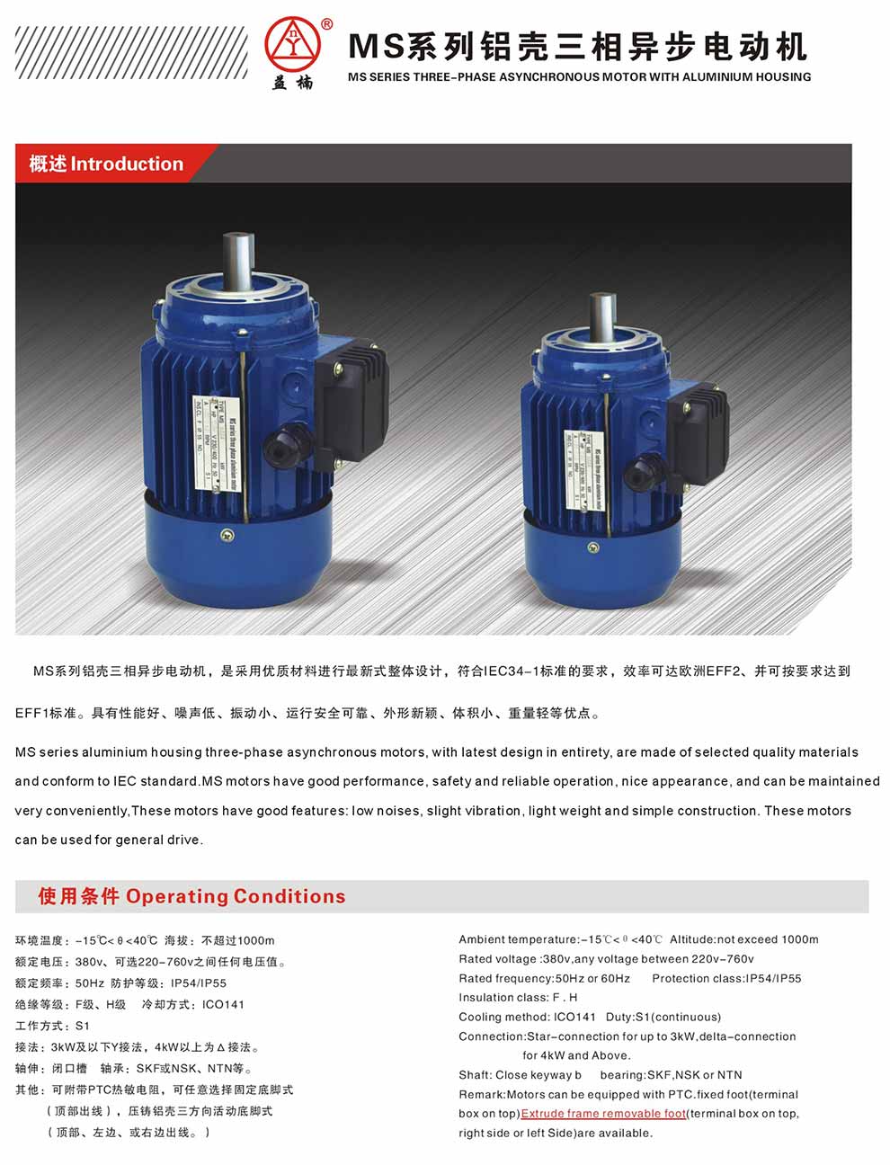 MS系列铝壳三相异步电动机 产品详情下载