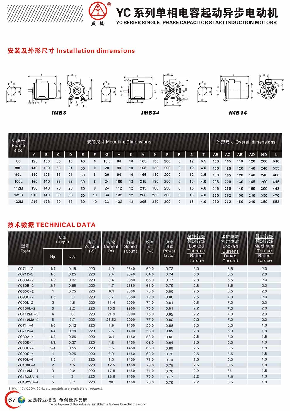 YC系列单相电容起动异步电动机 产品详情下载